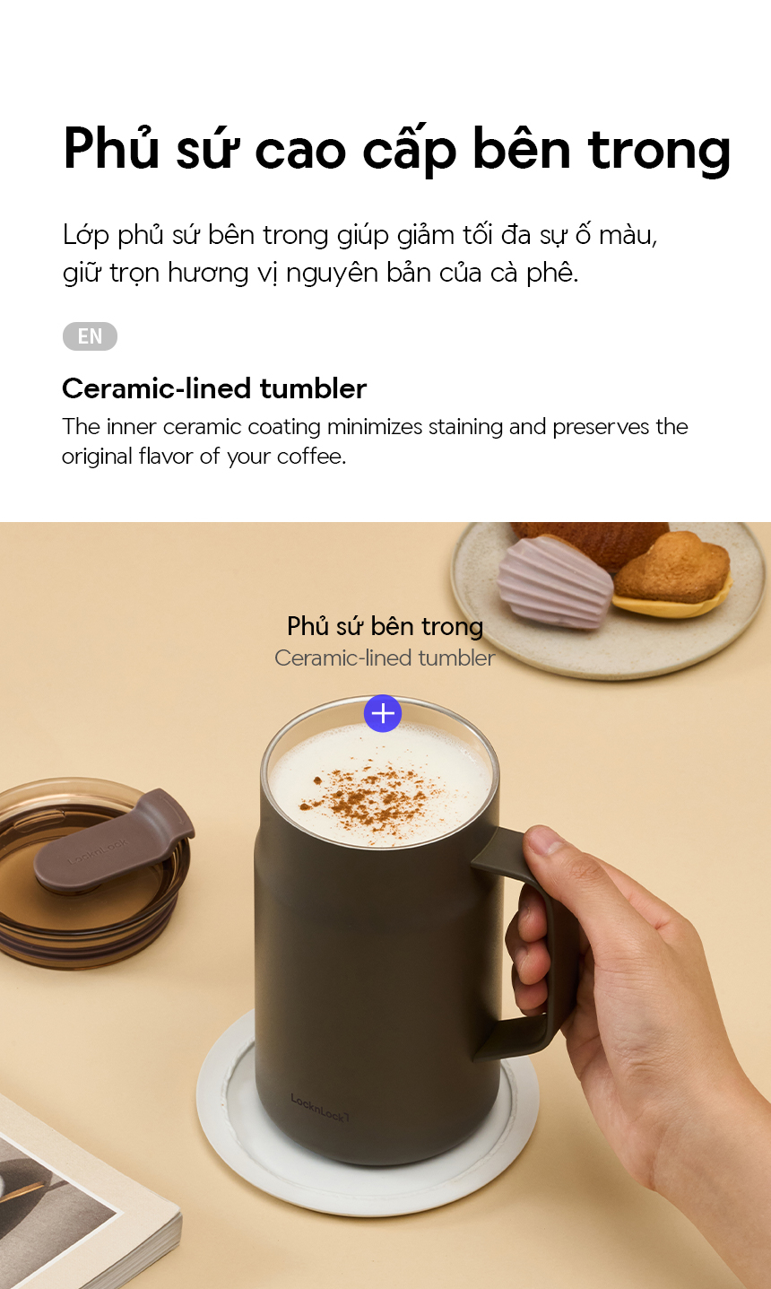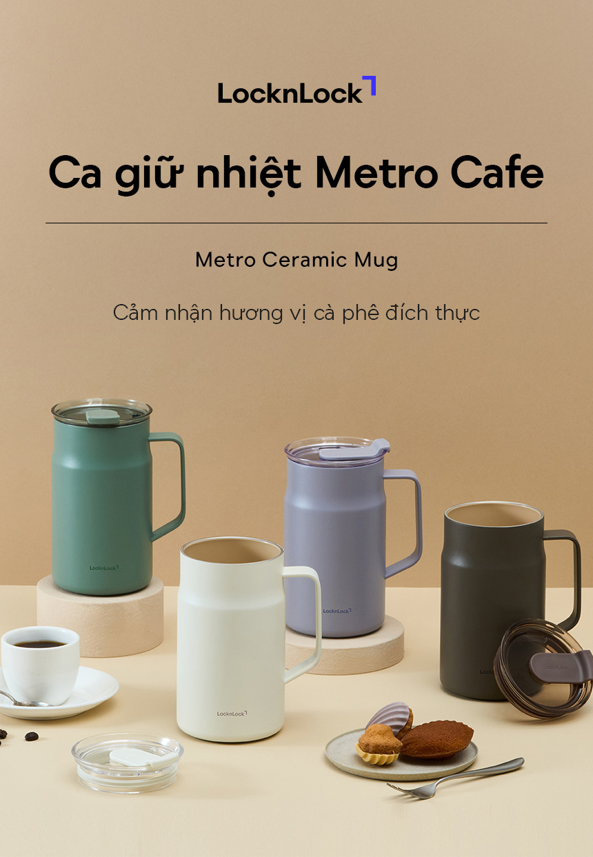 Ly Giữ Nhiệt LocknLock Metro Ceramic Mug LHC4282_C 600ml, Hàng Chính Hãng, Thép Phủ Sứ - JoyMall