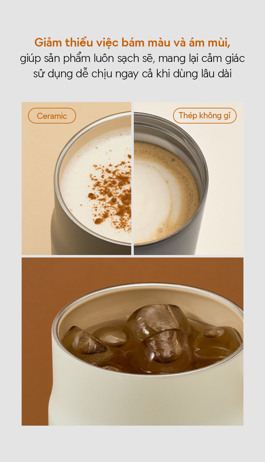 - Thép 304 + lớp phủ gốm bên trong: Giúp sử dụng vệ sinh hơn, giữ trọn hương vị nguyên bản của cà phê