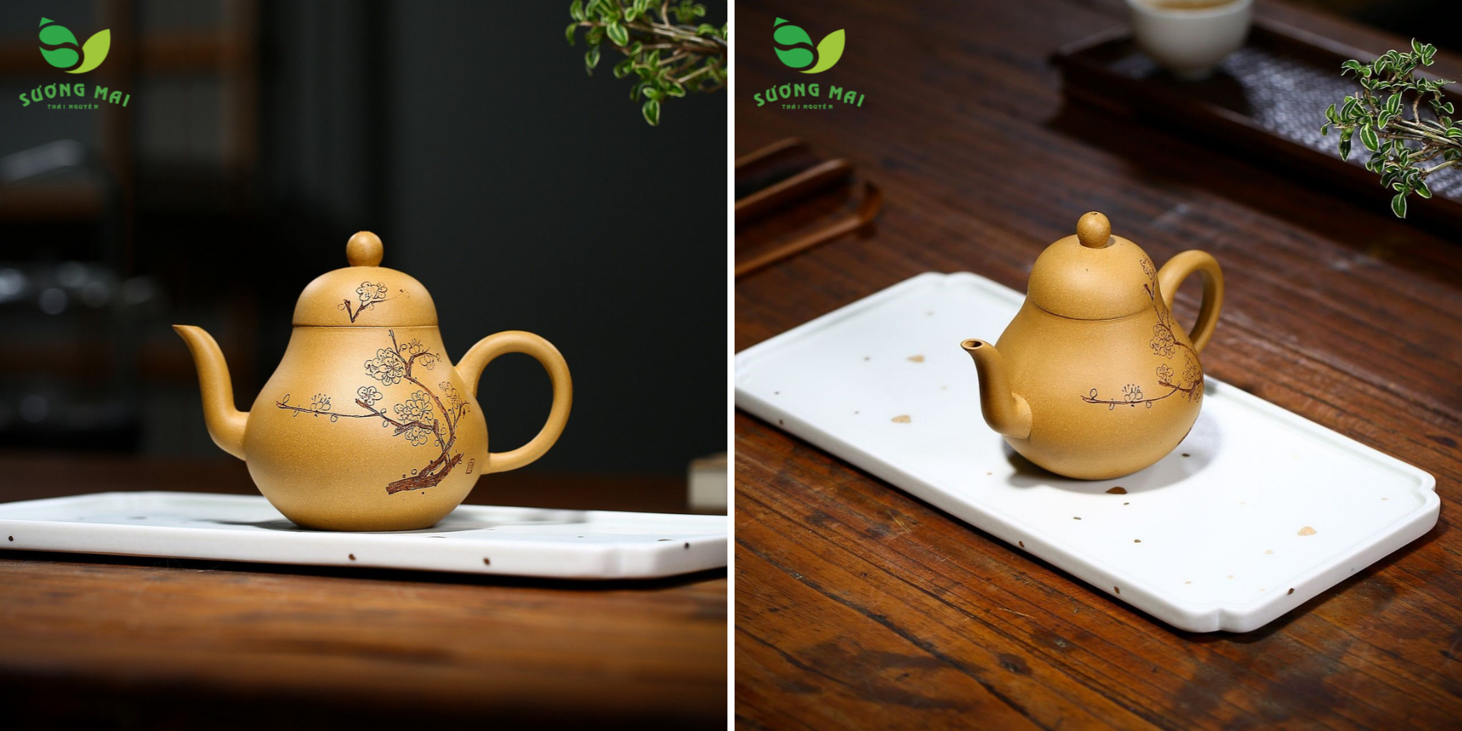 Lưu ý | Bộ Ấm Chén Tư Đình Hoa Đào, Đoàn Nê Nguyên Khoáng, Thủ Công 190ml- Họa tiết: Hoa Đào- Chế tác: Thủ công toàn chế- Chất đất: Đoàn Nê nguyên khoáng- Ấm kích thước: 13,5cm x 9,6cm, dung tích 220ml- Thoát nước: Hoa Mai 9 lỗ- Chén kích thước: 6,5cm x 3,2cm, dung tích 60ml |