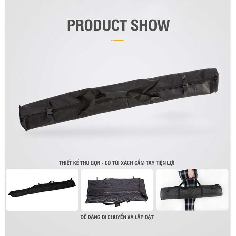 - Loại chân to, kích thước 1m2 cả hộp khi thu gọn - Thanh ngang là loại rút ra vào rất chắc chắn, tối đa 3m - Chân cỡ lớn 31mm rất chắc chắn. Chiều dài tối đa 3m - Thích hợp cho các studio căng background vải nặng hoặc backdrop tổ chức sự kiện sinh nhật