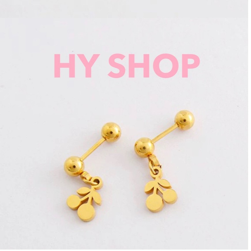 bông tai titan thép y tế 2 quả cherry nhỏ không dị ứng