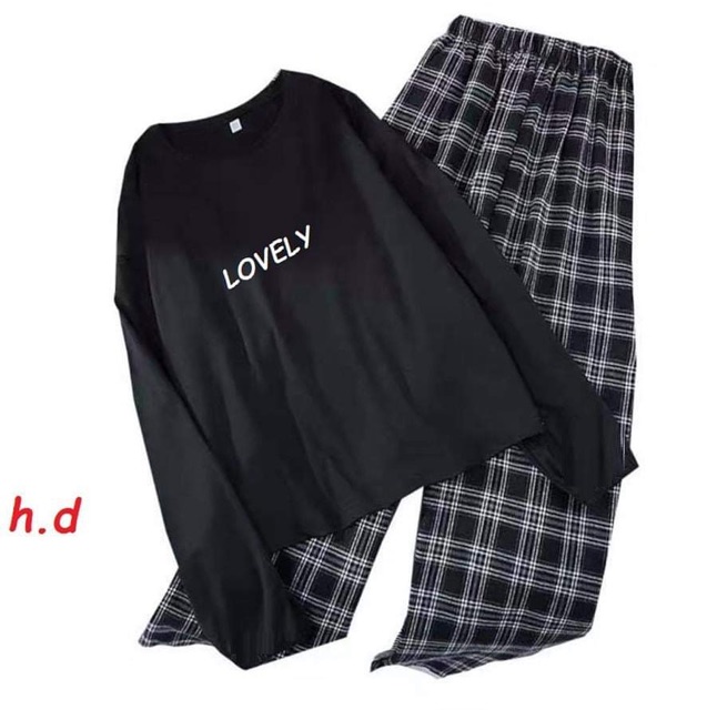 Sét áo tay dài LOVELY + quần kẻ ô HĐ12