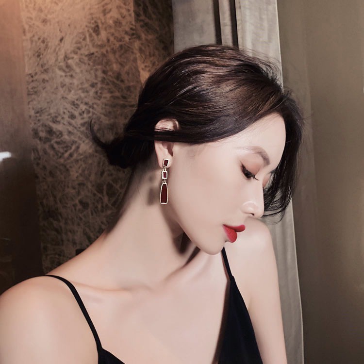 TÊN SẢN PHẨM: Khuyên tai nữ dáng dài hình học màu rượu vang đỏ TB25 TOBI STORE