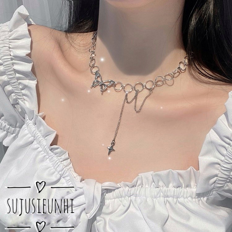 Phụ Kiện Thời Trang > Dây chuyền || (2 mẫu)vòng cổ choker mặt tròn gắn bướm,chữ thập kèm chain