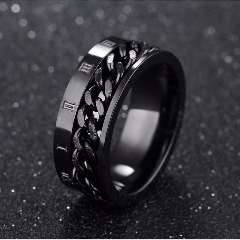 Giới thiệu Nhẫn Nam Kiểu Dây Xích Có Khắc Số La Mã Titan Ko Đen TT 0769