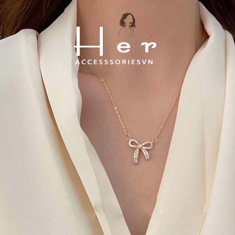 Giới thiệu Dây Chuyền, Vòng Cổ Nữ Dáng Mảnh Mặt Nơ Hàn Quốc Her Accessories C14