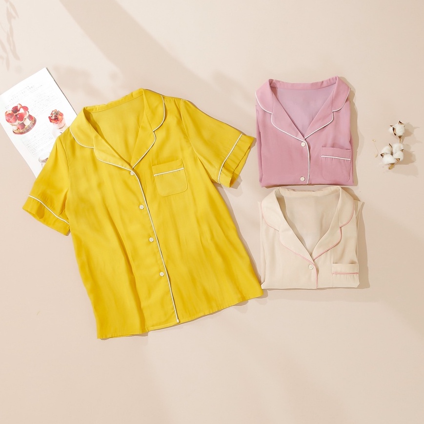 Giới thiệu Bộ Pijama MOMOJAMA áo cộc quần dài chất liệu lụa tằm, size từ 40 -70kg, M1785