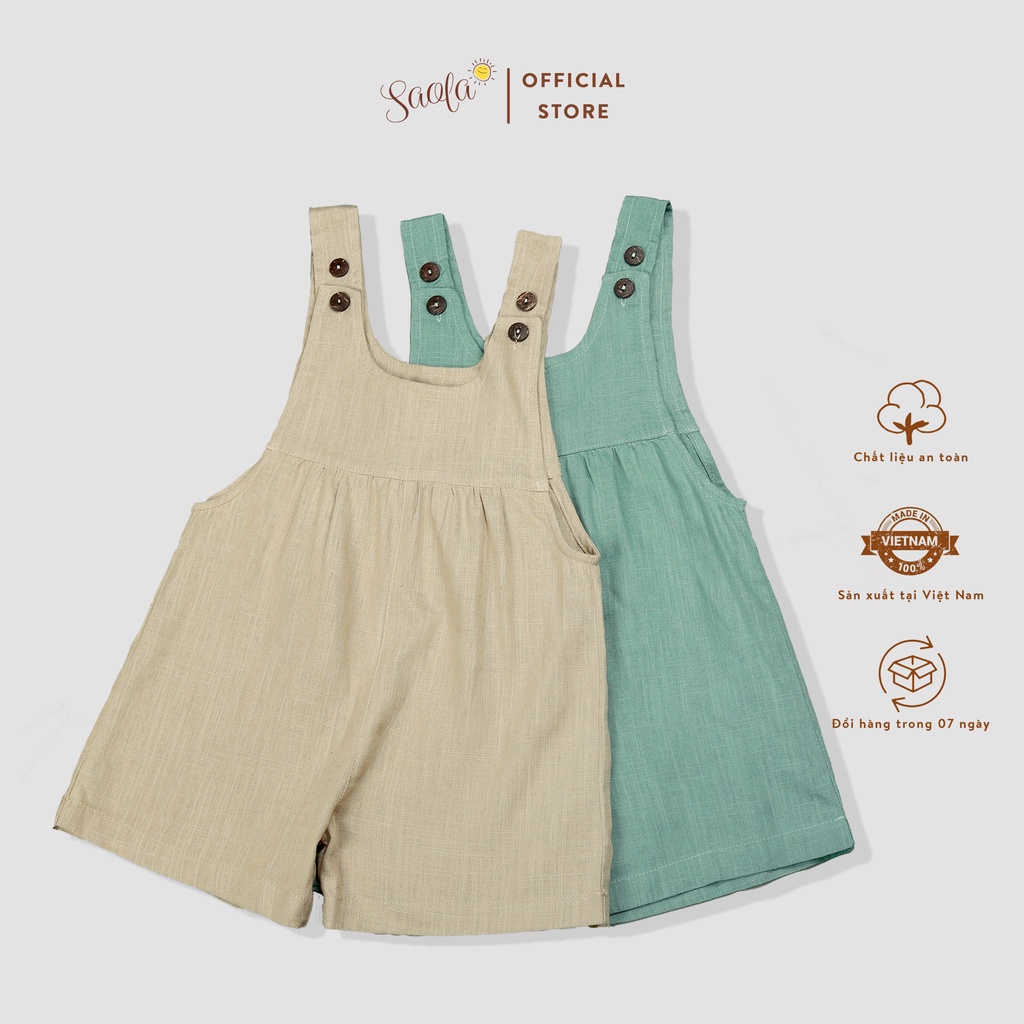 1. THÔNG TIN SẢN PHẨM: ★ Chất liệu: linen mềm mại, thấm hút mồ hôi tốt ★ Màu sắc: xanh - vàng ★ Mô tả sản phẩm: Bộ jumpsuit thiết kế cho cả bé trai và bé gái đều mặc được, tay sát nách mát mẻ cho mùa hè; ngoài ra, bé có thể phối thêm áo thun tay dài bên trong vào mùa lạnh... ★ Thích hợp mặc thường ngày, đi chơi, đi học, đi tiệc, dã ngoại, chụp hình ... ★ Thương hiệu: SAOLA ★ Sản xuất tại Việt Nam ★ Mã sản phẩm: JSL001 - JSL002 - JSM001 - JSM002