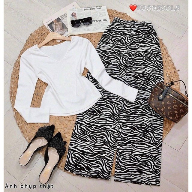 Giới thiệu Set áo cổ tim tay dài quần hoạ tiết rằn cực đẹp