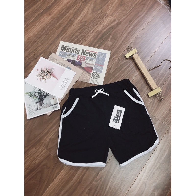 kiểu dáng : quần short nữ xuất xứ : hàng việt nam chất liệu : vải thun màu sắc : đen / trắng / xám hoa tiết : trơn form : Freesize 40 - 55kg chiều dài : ~35cm chi tiết : quần short nữ cạp chun phối viền vải co giãn tốt ____________________________________________________
