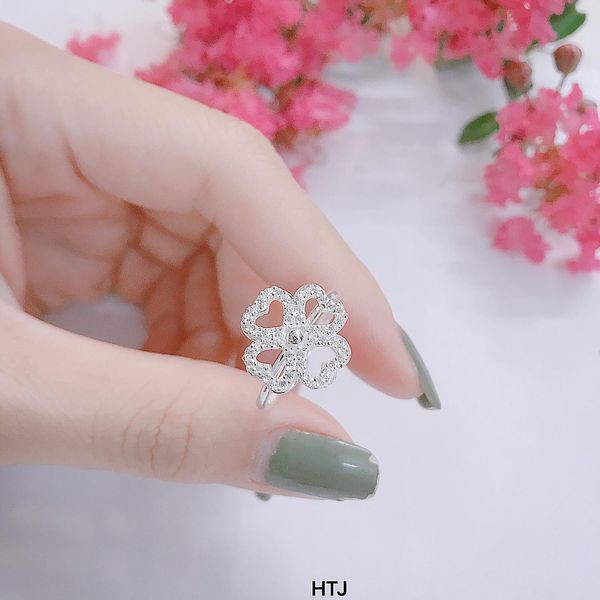 Giới thiệu Nhẫn cỏ 4 lá xoay bạc ta gắn đá nhỏ siêu hót - Nhẫn bạc Bibi