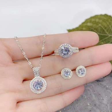 Giới thiệu Bộ trang sức bạc ta, bộ trang sức nữ đá tròn cao cấp bibi silver