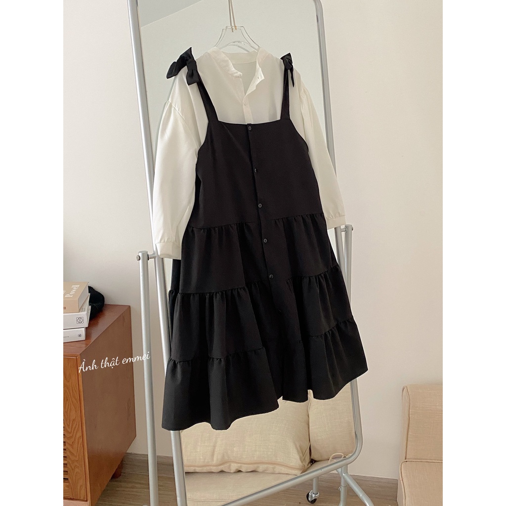 Yếm babydoll, đầm babydoll tiểu thư phong cách ulzzang emmei - Sét đầm babydoll bao gồm: 1 áo sơ mi cài cúc chất liệu đũi trơn mềm mại , 1 yếm bèo cài cúc chất liệu vải giãn lì hàn quốc. Chất vải đều mỏng nhẹ và mát. - Sản phẩm 100% giống mô tả. Hình ảnh sản phẩm là ảnh thật do shop tự chụp và giữ bản quyền hình ảnh - Xuất xứ: được thiết kế và gia công bởi emmeishop.