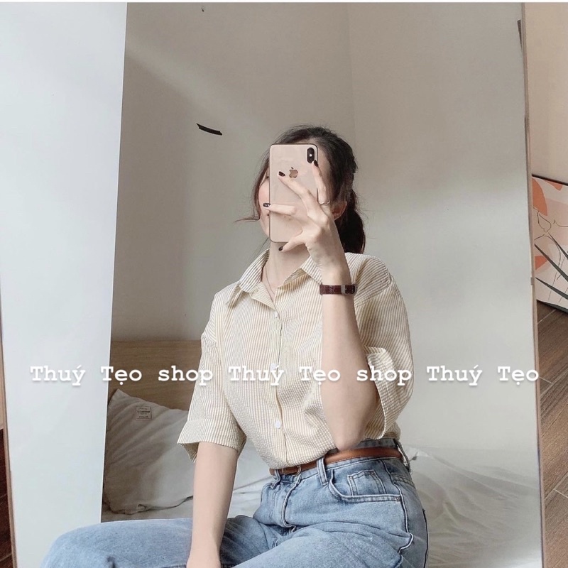 Giới thiệu Áo sơ mi kẻ nhỏ Hàn Quốc dáng rộng kẻ sọc nhiều màu Ulzzang (hàng QC)