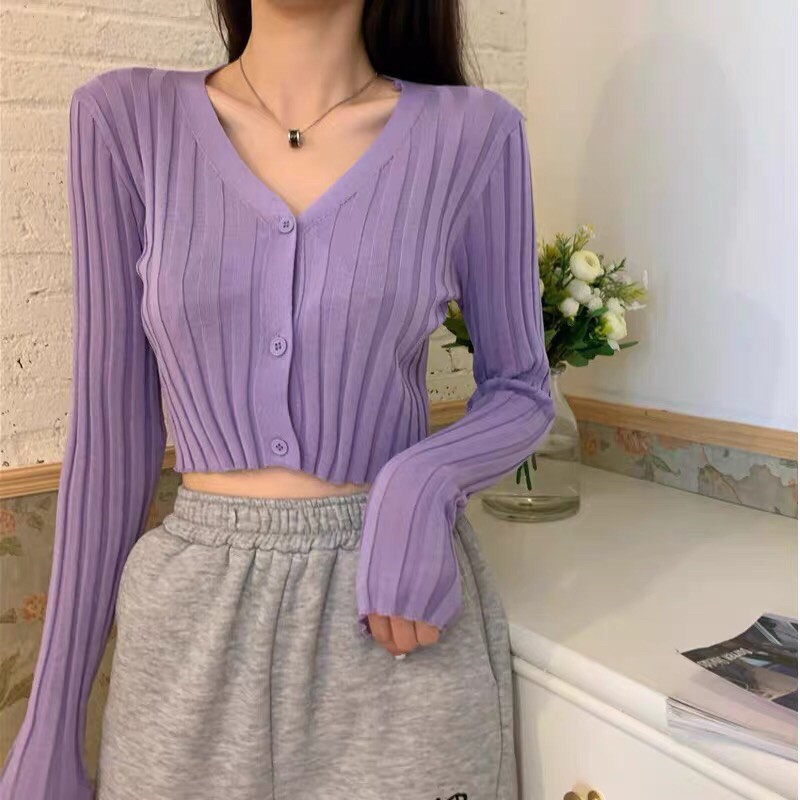 áo len cardigan đũa mỏng 3 khuy cài (7195#)