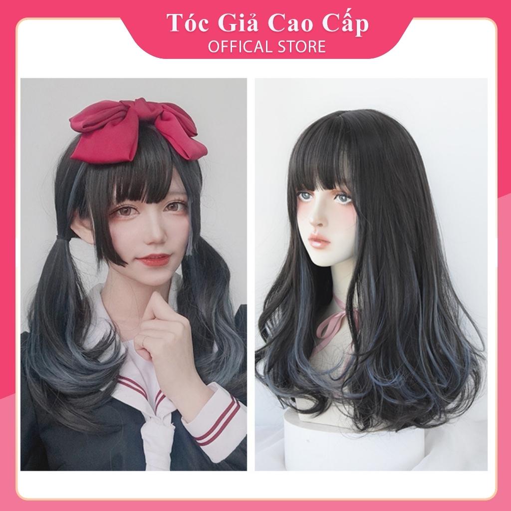 Giới thiệu Tóc giả nữ nguyên đầu xoăn phối line xanh coban, tặng kèm lưới trùm tóc, C8276