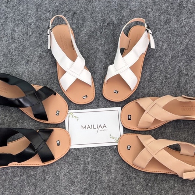 Giày Dép Nữ > Xăng-đan và dép > Xăng-đan đế bằng || Sandal quai chéo MAILIAA mã MOI chất da đi mềm