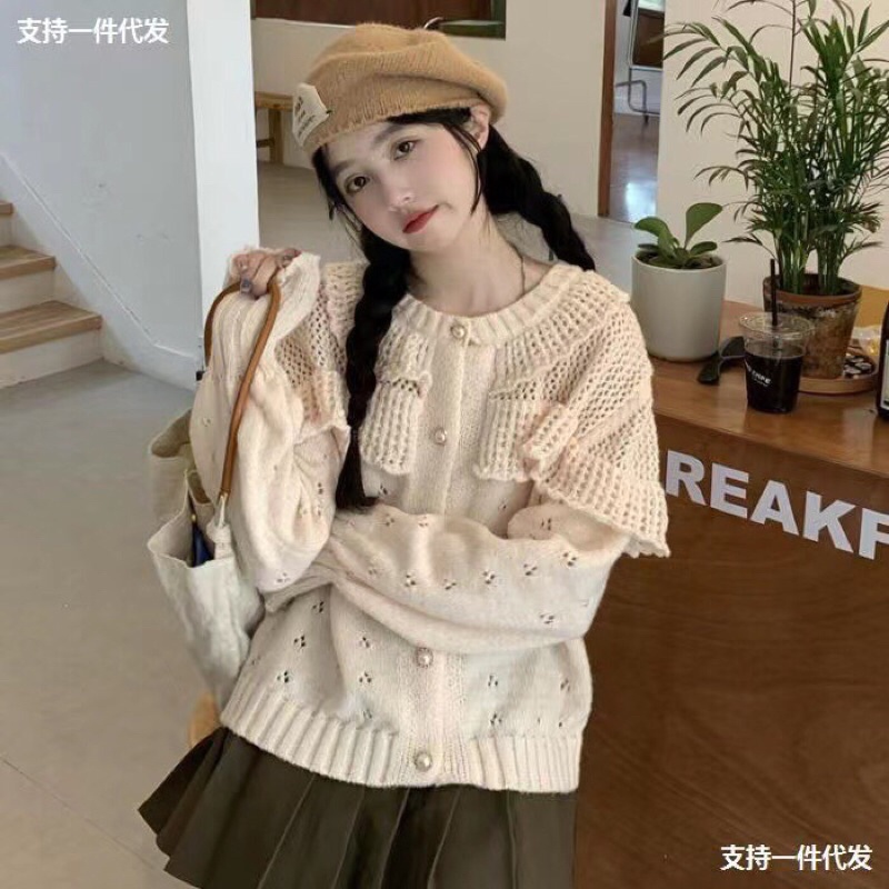 G38. 166. ÁO KHOÁC LEN THỪNG VIỀN BÈO XINH XẮN CÚC NGỌC TAY BỒNG HOT HÍTGiá CFXQ