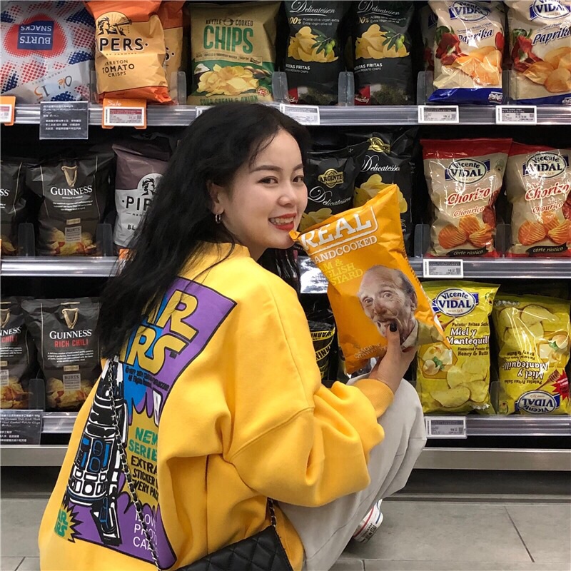 Giới thiệu Áo Sweater form thụng kiểu dáng Ulzzang chất nỉ bông màu vàng in hình sau lưng