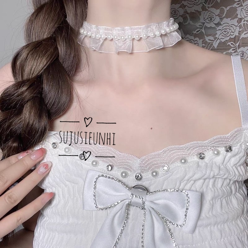 Vòng cổ choker voan đính ngọc xếp tầng bèo nhún lolita dễ thương