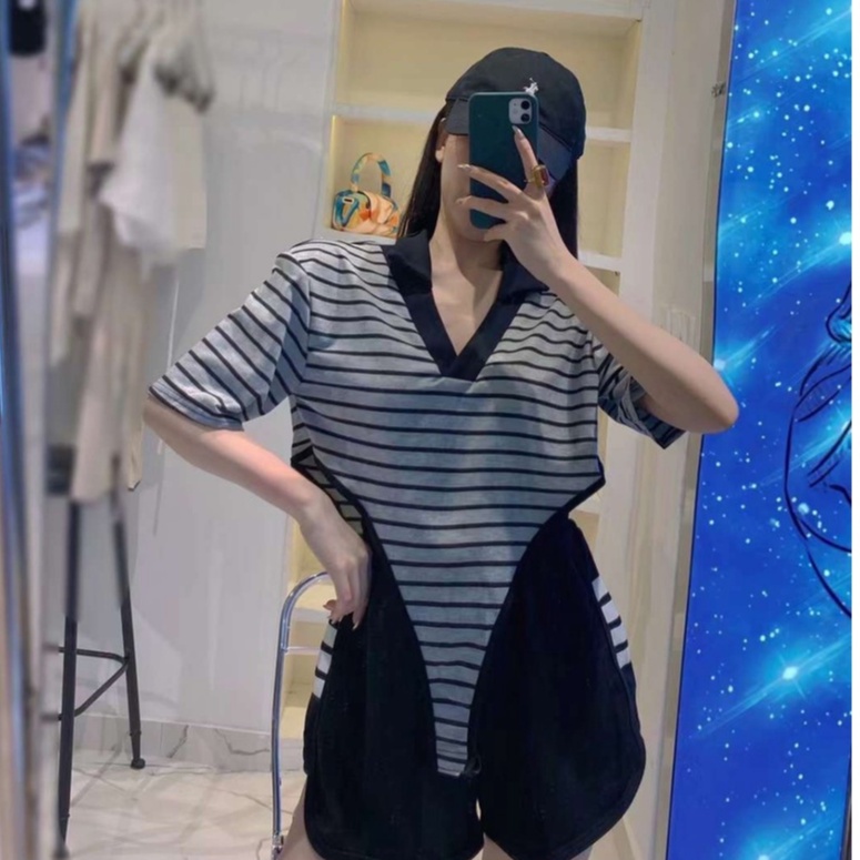 MÔ TẢ CHI TIẾT SẢN PHẨM - Áo Croptop liền thân bodysuit kẻ cộc tay cổ V thiết kế áo có bản cổ phối đen tạo nên sự nổi bật cho người mặc, phần thân dưới có khuy giúp định dạng dáng áo. Nàng có thể mặc khi đi chơi, thể thao, kết hợp cùng váy, quần bò, quần jogger, short, .... đều siêu yêu nhé.