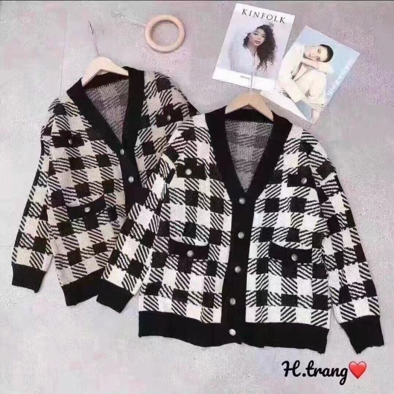ÁO KHOÁC CARDIGAN HOẠ TIẾT CARO, ÁO LEN, ÁO KHOÁC NỮ BASIC DỄ PHỐI ĐỒ