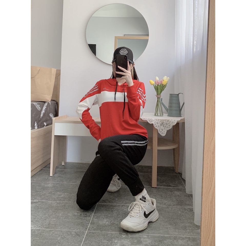 Giới thiệu Set Bộ Thu Đông Nữ Vải Umi Leo Cao cấp - Pha màu. Có mũ kèm dây rút