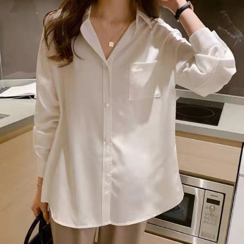 ÁO SƠ MI TRẮNG ĐI HỌC ĐI LÀM NỮ TAY DÀI CỔ BẺ FOROM RỘNG VỪA - SƠ MI ĐI HỌC SINH NỮ TRẮNG DÀI TAY VẢI MỊN MÁT