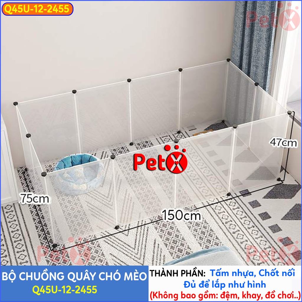 Các sản phẩm bộ Chuồng quây chó mèo được bán theo bộ, bao gồm tất cả các thành phần phụ kiện để lắp thành bộ chuồng quây, Nhưng KHÔNG bao gồm các sản phẩm như thảm, đệm, ổ nằm, khay nước, khay thức ăn, khay cát, đồ chơi…