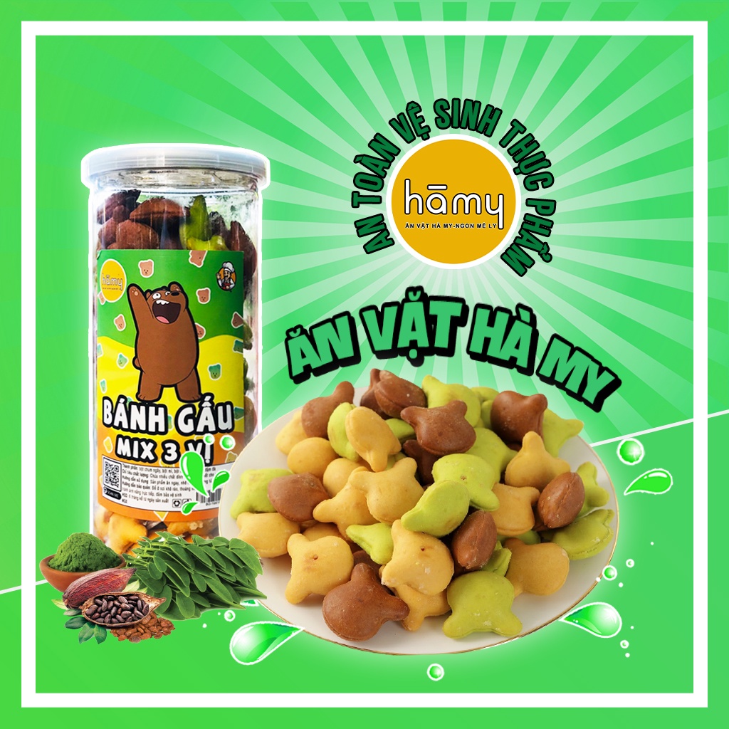 Giới thiệu Bánh gấu nhân kem mix 3 vị hũ 420g đồ ăn vặt Hà My