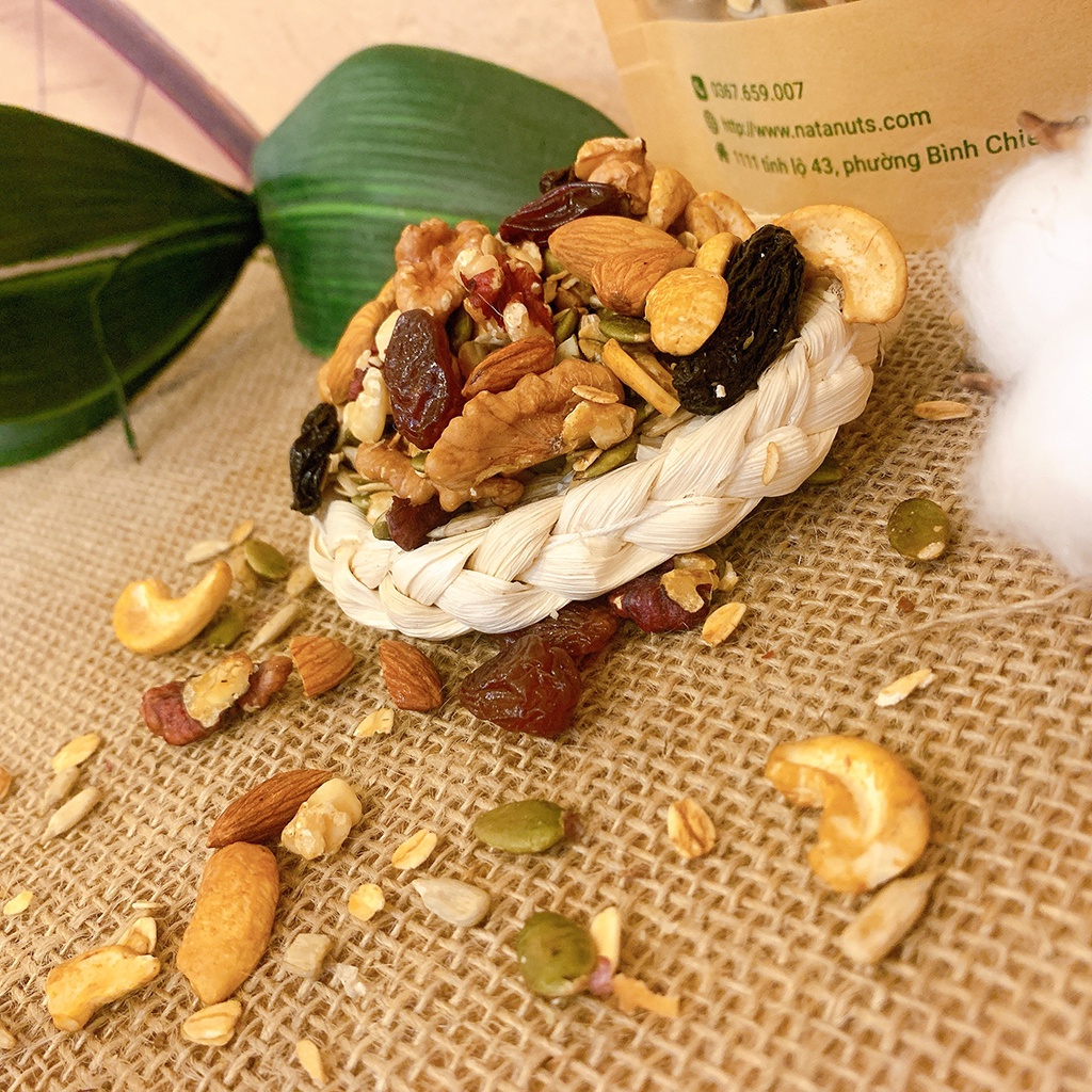 ✸ Granola dùn sao cho đúng cách ➣ Granola siêu hạt Natanuts dùng hàng ngày vào bữa sáng & bữa phụ, mỗi bữa chỉ với 2 muỗng granola tương đương 30g ~ 100 calo vừa giúp bạn có những bữa ăn ngon miệng, giàu dinh dưỡng và đặc biệt hơn là giúp săn chắc, mịn màng làn da và hỗ trợ giảm cân, tăng cơ giảm mỡ rất hiệu quả ➣ Ngoài sử dụng trực tiếp, bạn có thể mix cùng sữa chua không đường, sữa tươi & hoa quả, hương vị đa dạng và rất ngon --------------------------------- ✸ Bảo quản: Để nơi khô ráo, nếu chưa dùng hết vui lòng nắp kín và cất ở ngăn lạnh tủ lạnh ✸ Hạn sử dụng: 12 Tháng ( Sử dụng trong 30 ngày từ khi mở nắp sản phẩm trải nghiệm hương vị tốt nhất) ---------------------------------------- NGŨ CỐC DINH DƯỠNG - NATANUTS ⭐THUẬN TỰ NHIÊN ⭐KHÔNG CHẤT BẢO QUẢN ⭐KHÔNG PHỤ GIA HƯƠN LIỆU ⭐KHÔNG ĐƯỜNG TINH LUYỆN ⭐KHÔNG BIẾN ĐỔI GEN