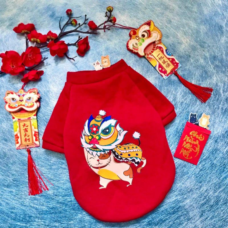 Giới thiệu ÁO NỈ ĐỎ TẾT CHÓ MÈO 1 - 12KG (Xem size vải trên từng ảnh)