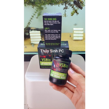 Men vi sinh VSBio làm trong nước, hỗ trợ xử lý các vấn đề: mùi hôi tanh, vết dầu mỡ, tảo hại, thức ăn thừa, chất thải, nấm bệnh. Sản phẩm dc nuôi cấy và tăng sinh khối trong phòng thí nghiệm. Đặc biệt, sản phẩm có mùi thơm đặc trưng không nồng nặc như các loại vi sinh khác.