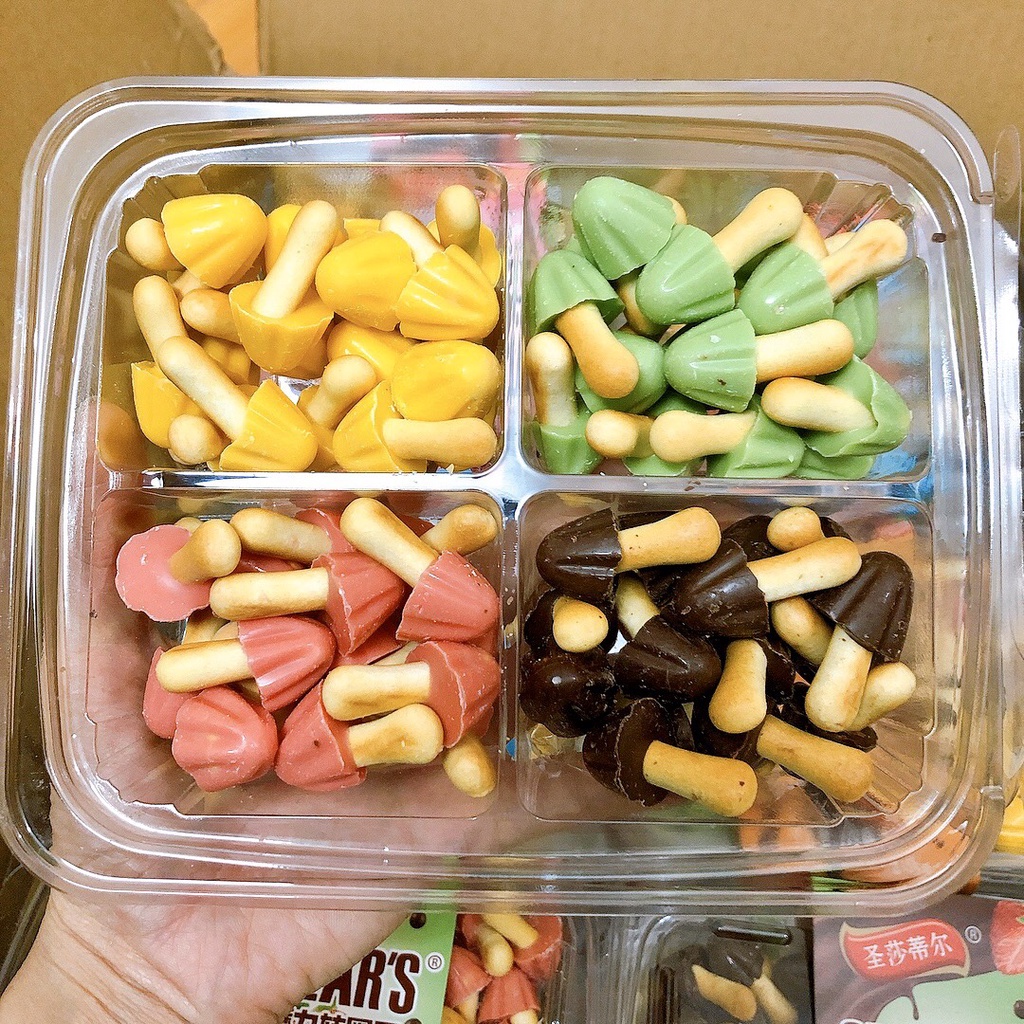 BÁNH QUY NẤM SOCOLA MIX 4 VỊ HỘP 220G - Bánh được phủ 4 vị + Cam + Dưa gang + Dâu tây + Socola đen - Thân bánh giòn rụm - được phủ lớp socola thơm thơm beo béo socola nè. - Bánh vị ngọt vừa phải , không hề bị ngấy và có mùi thơm đặc trưng. - Chocolate hòa quyện với bánh quy ăn không hề chán, đặc biệt để lạnh ăn rất ngon - Ngày sản xuất: in trên sản phẩm - Hạn sử dụng: 12 tháng ----------------------- Hướng dẫn MUA nhiều mặt hàng /1 đơn hàng của Shop: Bước 1: Chọn từng mặt hàng với số lượng/ màu sắc/ vị -> ấn thêm vào giỏ hàng. Bước 2: Vào giỏ hàng của bạn (ở phía góc trên cùng bên phải) chọn bằng cách tích những sản phẩm bạn muốn mua rồi ấn mua hàng. Tip: Bạn đừng quên sử dụng mã FREESHIP để được hỗ trợ tiền ship nha. ***** BUN_SHOP1205 CAM KẾT: 1: Sản phẩm đúng nguồn gốc, xuất xứ. 2: Sản phẩm đúng chất lượng, an toàn cho sức khỏe người tiêu dung 3: Shop không bán hàng cận date hoặc hết date 4: Cam kết hoàn tiền 100% nếu xảy ra lỗi của Shop. Cảm ơn quý khách hàng đã luôn tin yêu và ủng hộ shop. Rất mong được phục vụ các bạn. Mọi thắc mắc về sản phẩm cũng như đơn hàng xin quý khách IBOX ngay cho Shop để được hỗ trợ nhanh nhất.