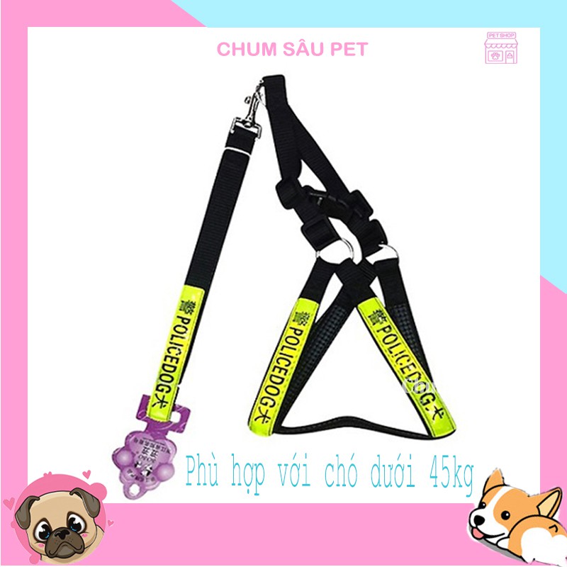 Bộ Dây Dắt Chó Kèm Yếm Ngực Police Phản Quang