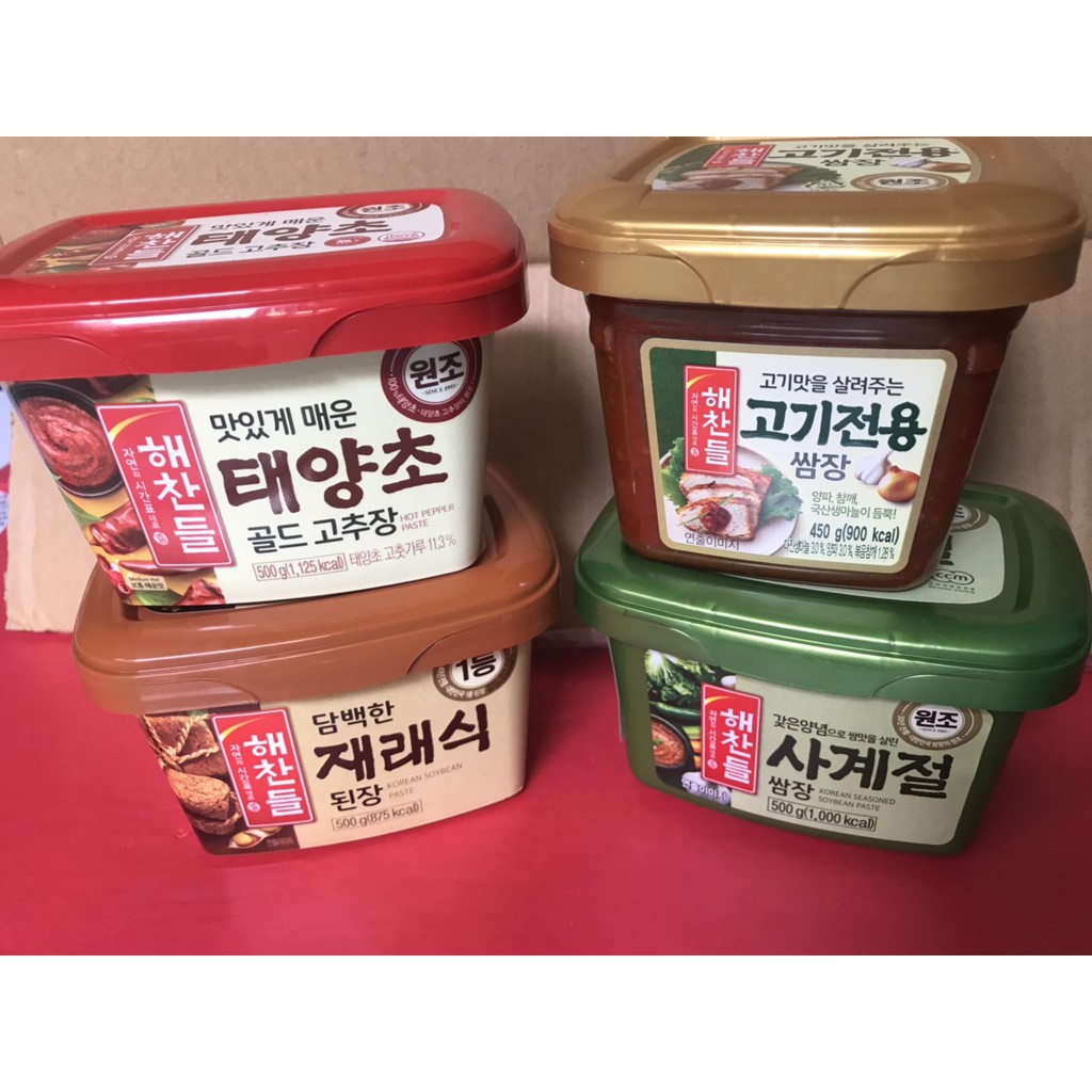 ➡️ TÊN SẢN PHẨM: Combo 4 Loại Tương Hàn Quốc ➡️ THÔNG TIN SẢN PHẨM: 1. Tương Ớt Hàn Quốc 500g - Xuất xứ: Hàn Quốc - Nhập Khẩu bởi cty Cj Foods - Hạn sử dụng: 12 tháng kể từ ngày sản xuất in trên bao bìa sản phẩm - Đóng gói: 500g/ hộp - Thành phần: Ớt, gia vị cay, bột ớt, bột gạo, sốt tương, muối..... - Công dụng: Dùng để chế biến nhiều món ăn Hàn nổi tiếng như: tokbokki (bánh gạo cay), bibimbap (cơm trộn), kimchi, mì trộn tương, mì trộn kim chi các loại,..... - Bảo quản: Nơi khô thoáng , để ngăn mát khi đã mở nắp hộp. 2. Tương Trộn Hàn Quốc 500g - Xuất xứ : Hàn Quốc - Hạn sử dụng: 12 tháng kể từ ngày sản xuất in trên bao bìa sản phẩm - Đóng gói: 500g/hộp - Thành Phần: Tương đậu nành, bột lúa mì, mạch nha, sốt gia vị ớt, đường, hành tây, tinh chất tỏi, hạt nêm rau củ, dầu mè, tinh chất nấm đông cô.... - Công Dụng: Làm gia vị chấm, và chế biến các món ăn. - Bảo quản: Nơi khô thoáng , để ngăn mát khi đã mở nắp hộp. 3. Tương Chấm Hàn Quốc 450g - Xuất xứ: Hàn Quốc - Nhập khẩu và chịu trách nhiệm bởi công ty TNHH CJ Foods VietNam - Hạn sử dụng: 12 tháng kể từ ngày sản xuất in trên bao bìa sản phẩm - Đóng gói: 450g/ hộp - Thành Phần: từ tương ớt, gia vị ớt, tương đậu nành, siro bắp, tỏi, tương hành, đường, ngũ cốc lên men, bột tương khử chất bép, nước, mè rang, dầu mè, muối - Công Dụng: Sử dụng như gia vị trong chế biến món ăn. Sản phẩm có hương vị thơm ngon, cay đặc trưng Hàn Quốc, thích hợp dùng làm gia vị chấm cho các món ăn, đặc biệt là thịt nướng. - Bảo quản: Bảo quản ở nhiệt độ phòng, giữ sản phẩm trong tủ lạnh sau khi mở bao bì. 4. Tương Đậu Hàn Quốc 500g - Xuất xứ : Hàn Quốc - Hạn sử dụng: 12 tháng kể từ ngày sản xuất in trên bao bìa sản phẩm - Đóng gói: 500g/hộp - Thành Phần: Tương đậu nành, bột lúa mì, mạch nha, sốt gia vị ớt, đường, hành tây, tinh chất tỏi, hạt nêm rau củ, dầu mè, tinh chất nấm đông cô.... - Công Dụng: Làm gia vị chấm, và chế biến các món ăn.