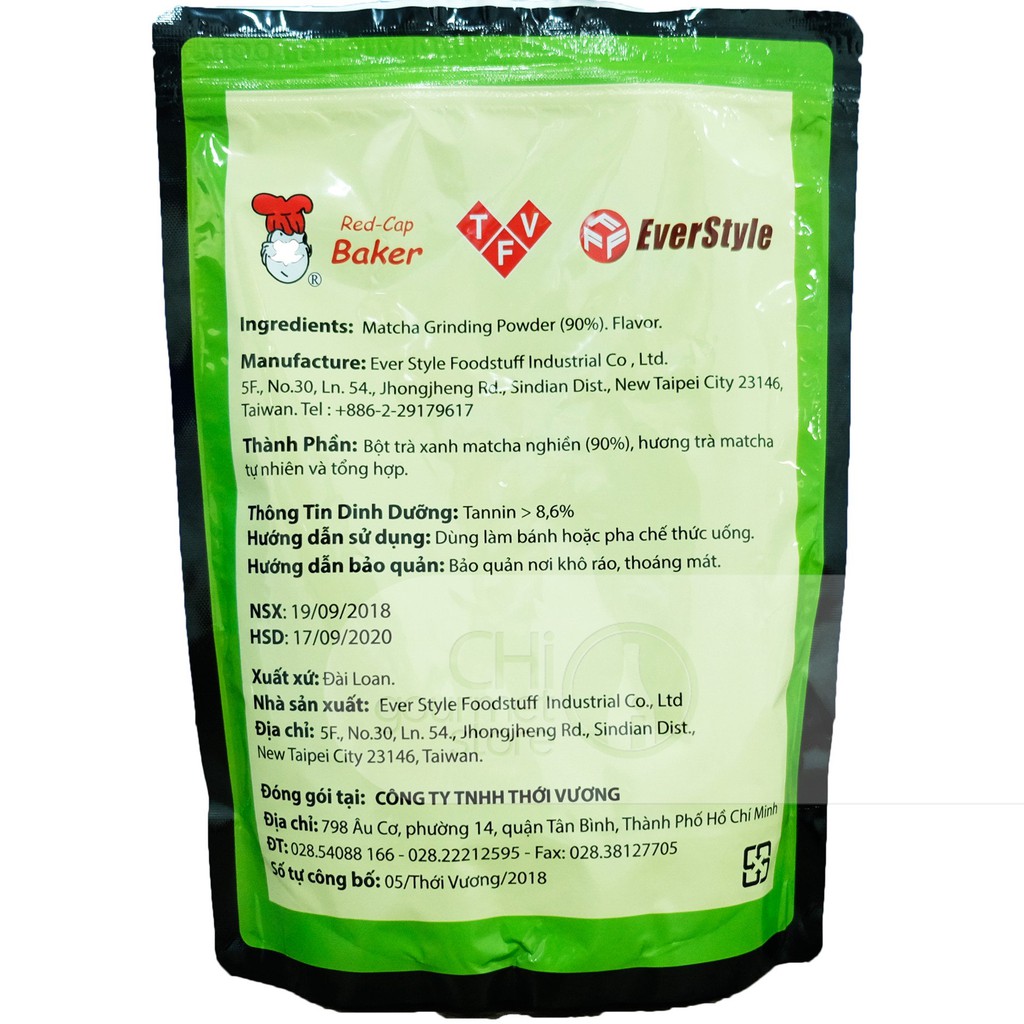 - Bột trà xanh Matcha Đài loan được sản xuất tại Đài Loan theo công nghệ tiên tiến. Đặc điểm của trà xanh matcha Đài Loan mà không bao giờ bị nhầm lẫn đó là mùi vị. - Trà xanh matcha Đài Loan có mùi thơm ngát, có màu xanh đậm, bột trà mịn. - Bột trà xanh có rất nhiều công dụng, có thể dùng làm bánh, làm kem, làm đẹp cực hiệu quả cho các chị em. Bột trà xanh matcha Đài Loan giúp làm sạch bụi bẩn trên da, làm chậm quá trình lão hóa, giúp mắt giảm bớt thâm quầng, giúp mặt giảm thâm nám do thường xuyên tiếp xúc với ánh nắng. Đắp mặt nạ trà xanh sẽ giúp bạn ngừa mụn và chống da không bị viêm nhiễm và cũng là thực phẩm để pha trà. - Hương vị thơm, màu sắc đẹp mắt giúp bạn dễ dàng tạo mùi, màu cho món bánh, kem thêm hấp dẫn và đẹp mắt với bột trà xanh Matcha Đài Loan. - Sản phẩm với hương hoa, màu xanh đẹp mắt. Sử dụng trong làm bánh, kem, thức uống đá xay. - Xuất xứ: Đài Loan - Hạn sử dụng: 2 năm kể từ ngày sản xuất. - Khối lượng: 500g