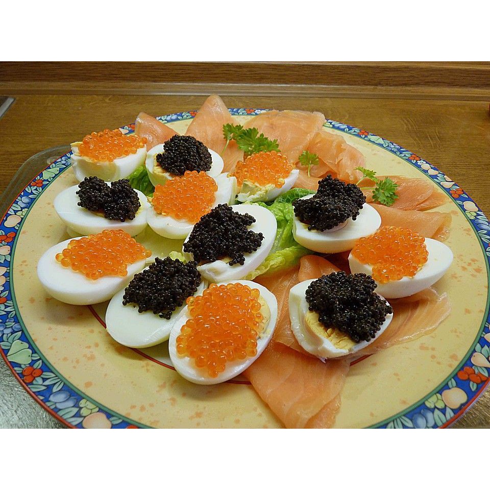 Với omega 3 có trong trứng cá đen giúp cho trẻ em tăng cường thị lực, ngoài ra còn mang tác dụng là chống viêm, đặc biệt cung cấp đầy đủ dưỡng chất cho với phụ nữa có thai trong thời kỳ quan trọng. Riêng với phái nữ, trứng cá đen giúp trẻ hóa làn da, cung cấp hỗn hợp amino axit có tác dụng tái tạo sinh dưỡng cho làn da được tươi mới. ----------------------------------------- Cách dùng trứng cá: ** Trứng cá có thể ăn ngay hoặc kèm với bánh mì đen, bơ, pho mai miếng. ** Hoặc có thể chế biến thành nhiều món ăn khác như: Trứng cá chiên, nem trứng cá, shusi trứng cá hồi, sa-lát trứng cá hồi …. Trứng cá có thể được dùng chung với hành tây thái vụn, ăn cùng với blini, bánh mì trắng và bơ, khoai tây không lột vỏ được hấp chín và đặc biệt, để tuyệt vời nhất, bạn nên ăn kèm với một lát chanh, kem chua, kem frâiche, trứng luộc tách riêng lòng trắng và lòng đỏ và hành xay. Ngày sản xuất: in trên hộp Hạn sử dụng : 12 tháng Nhiệt độ bảo quản: 2-4oC