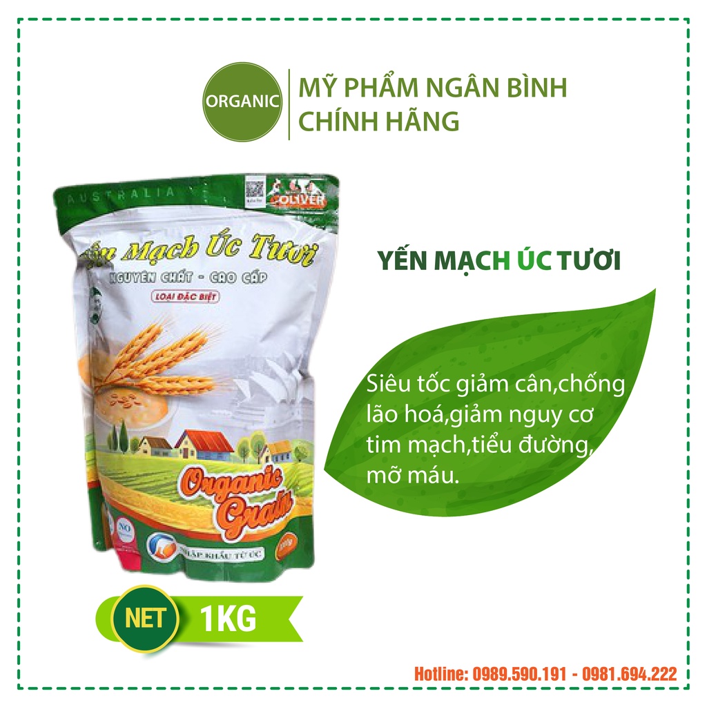 Yến mạch Úc tươi ngũ cốc giảm cân, bổ sung dưỡng chất, làm đẹp da 1KG Yến mạch là ngũ cốc từ thiên nhiên, thuộc dạng thực phẩm đặc biệt, có nhiều chất xơ và được coi là vua của các loại ngũ cốc – lý tưởng trong việc GIẢM C N. Bột yến mạch là một nguồn cung cấp vitamin, khoáng chất cần thiết cho cơ thể.