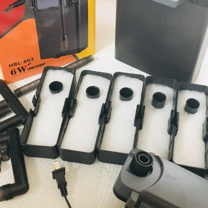 Bông lọc trắng: giữ lại cặn thô, đối với bể cá đây là vật liệu quan trọng giúp nước trong và nuôi giữ vi sinh. Bông lọc thường được đặt ở ngăn đầu tiên của hệ thống nên nó thường bẩn rất nhanh hay tắc nghẽn, do vậy người chơi phải vệ sinh định kì thường xuyên. Không dùng xà bông để giặt, chỉ dùng nước sạch, giặt và tái sử dụng 1-2 lần nên thay mới để hiệu quả lọc cao nhất.