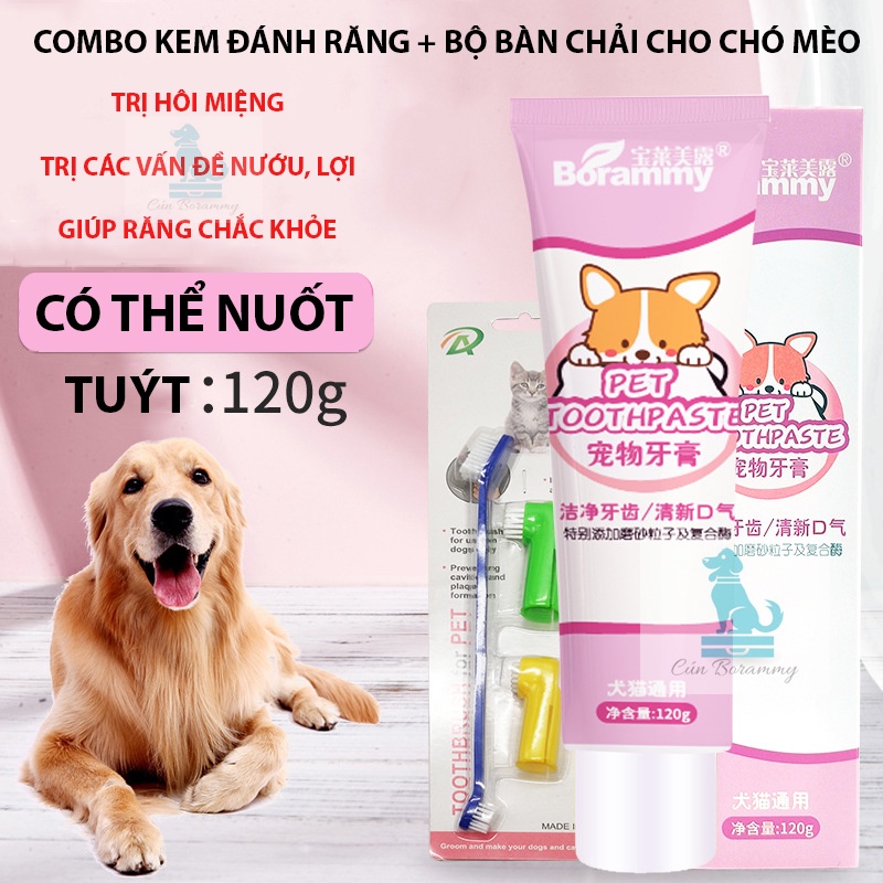 Chăm Sóc Thú Cưng > Làm đẹp cho thú cưng > Chăm sóc răng miệng || [Mã 44FMCGSALE1 giảm 10% đơn 250K] Combo kem đánh răng + bàn chải đánh răng cho thú cưng