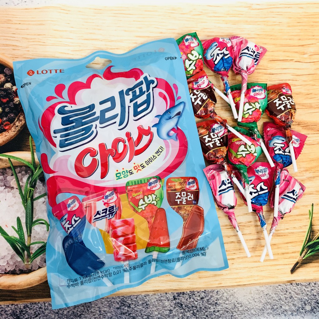 Thực phẩm và đồ uống > Đồ ăn vặt > Kẹo || KẸO MÚT LOLLIPOP ICE LOTTE GÓI 132G