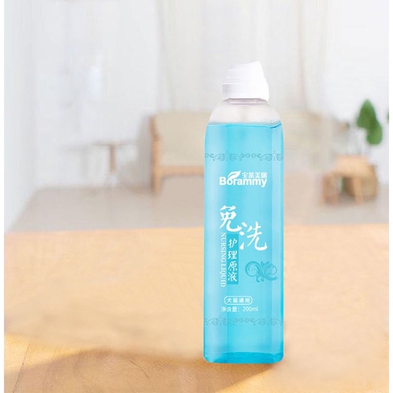 Sữa tắm khô thương hiệu Borammy được nhiều người tin dùng và đã có mặt trên thị trường 3 năm nay **Sữa tắm khô cho chó mèo thể tích: 200ml Đặc điểm sản phẩm : - Không cần dùng nước tránh nguy cơ bệnh - Tiện lợi nhanh chóng - Khử mùi, lưu lại hương thơm - Không cần rửa lại bằng nước cũng đạt được hiệu quả khử trùng, diệt khuẩn và vệ sinh cơ thể. - Có khả năng khử mùi, dưỡng lông, làm sạch cơ thể thú cưng - Sản phẩm có công thức tính nhẹ nhàng, phù hơp với chó mèo ở mọi độ tuổi. Phương pháp sử dụng : - Cho một lượng sữa tắm thích hợp vào lòng bàn tay hoặc xịt trực tiếp lên thú cưng. - Dùng tay hoặc khăn nhẹ nhàng Massage lên toàn thân chó mèo - Có thể sử dụng lược chuyên dùng cho thú cưng để chải lông, sau đó dùng khăn lau khô.