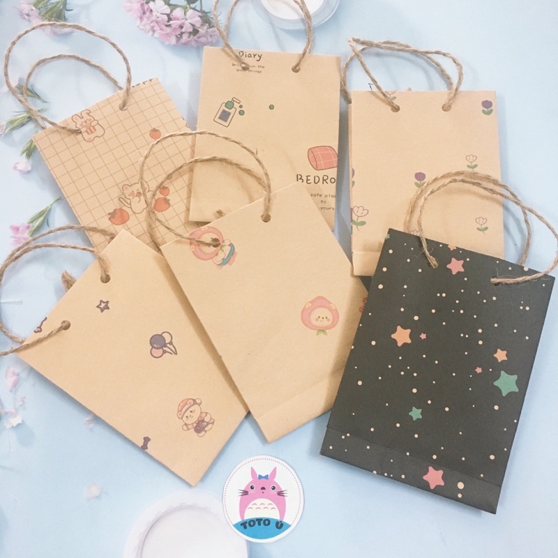 Giới thiệu Túi giấy mini vintage kraft họa tiết có quai xinh xắn 12.5 x 9 x 3cm (mẫu ngẫu nhiên)