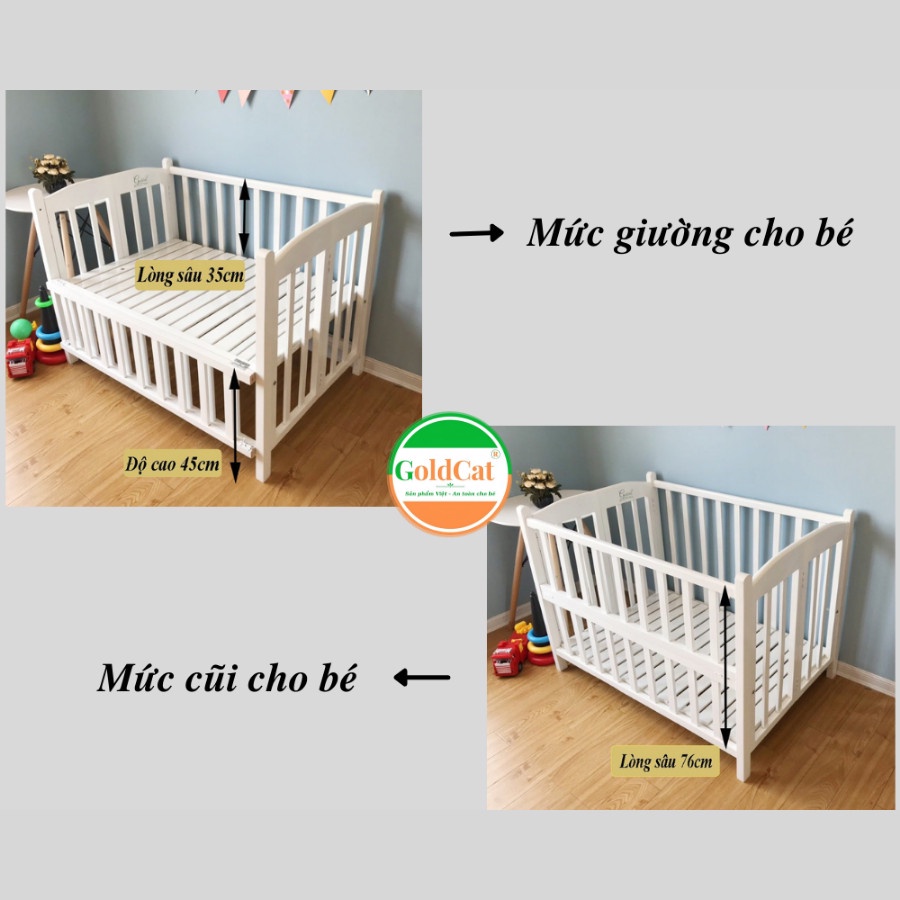 Mẹ & Bé > Đồ dùng phòng ngủ cho bé > Nôi & Cũi & Giường cho bé || [Mã BMLT300 giảm 10% đơn 499K] Nôi Cũi Cho Em Bé 4in1 GOLDCAT C4T Làm Từ Gỗ Quế Có Thể Gấp Gọn Giúp Trẻ Chống Trào Ngược