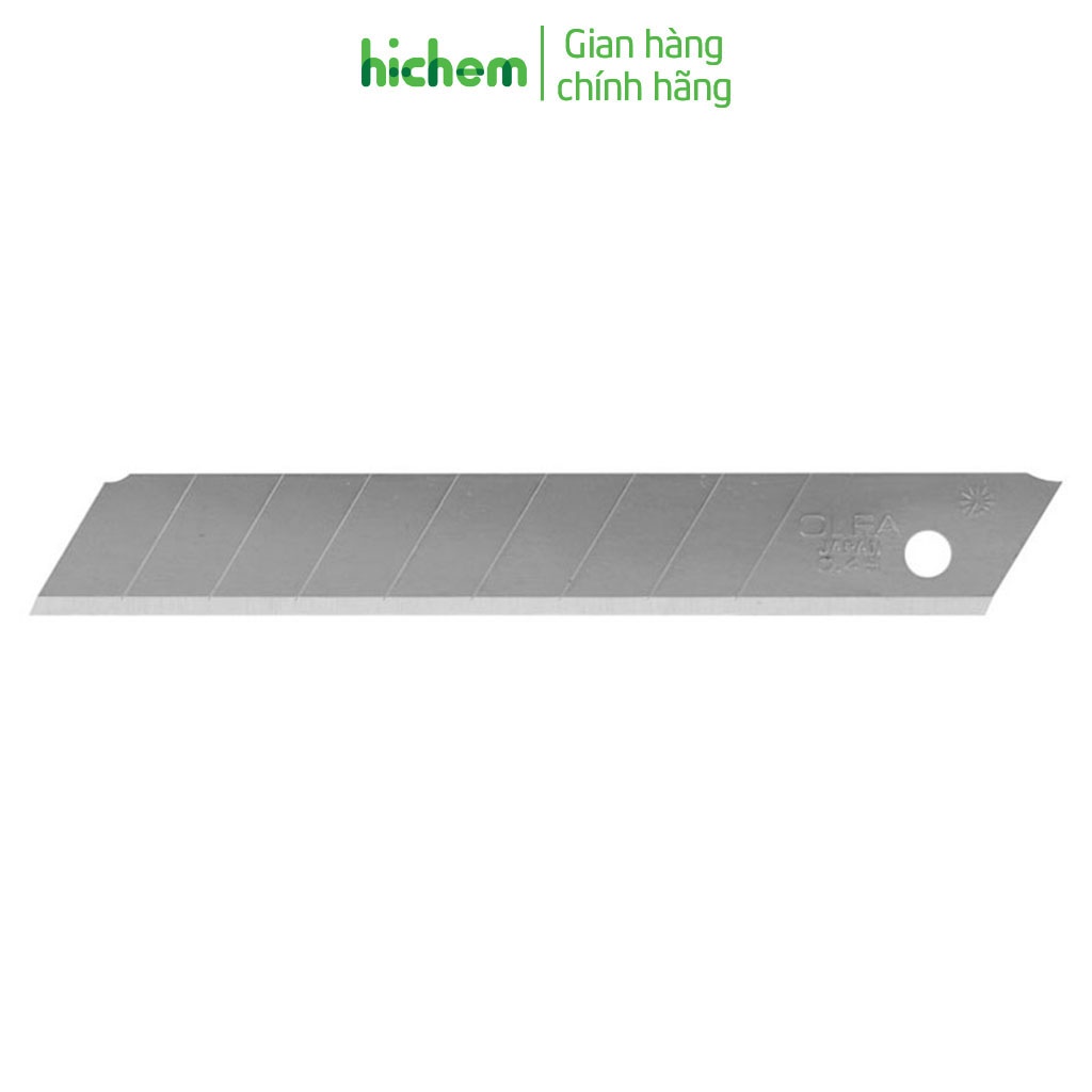 Lưỡi dao OLFA MTB là lưỡi dao bẻ 9 đoạn, với kích thước: dài 83.8mm, rộng 12.5mm, dày 0.45mm. Được làm từ thép carbon công cụ chất lượng cao. MTB-10B chứa 10 lưỡi dao trong một hộp nhựa.