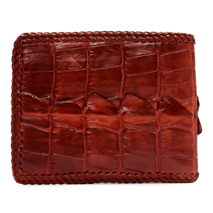 Giới thiệu Bóp nam Huy Hoàng da cá sấu đan viền màu nâu đất HP2223