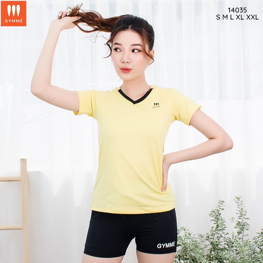 Giới thiệu Áo tập gym yoga nữ chất thun tay ngắn cổ tim GYMME - 14035