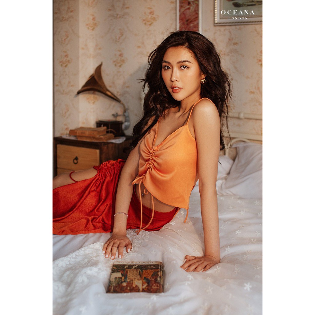 Giới thiệu Oceana London - Áo hai dây rút nơ ngực Berta màu cam