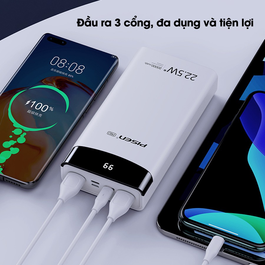 Giới thiệu [Mã BMBAU300 giảm 7% đơn 499K] Sạc dự phòng PISEN pro led station 30000MAH, 22.5W - hàng chính hãng